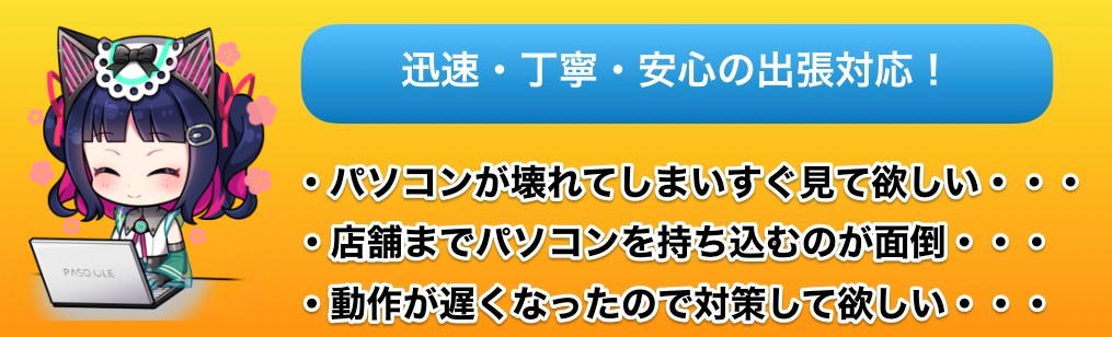 残念ながらパソコンが直らなかった場合や、診断の結果買い替えをされる場合は、出張料金のみ頂戴致します。